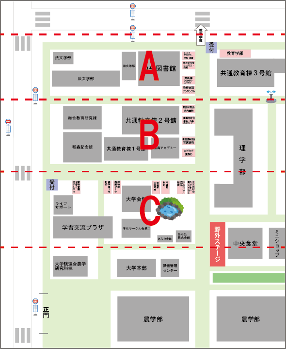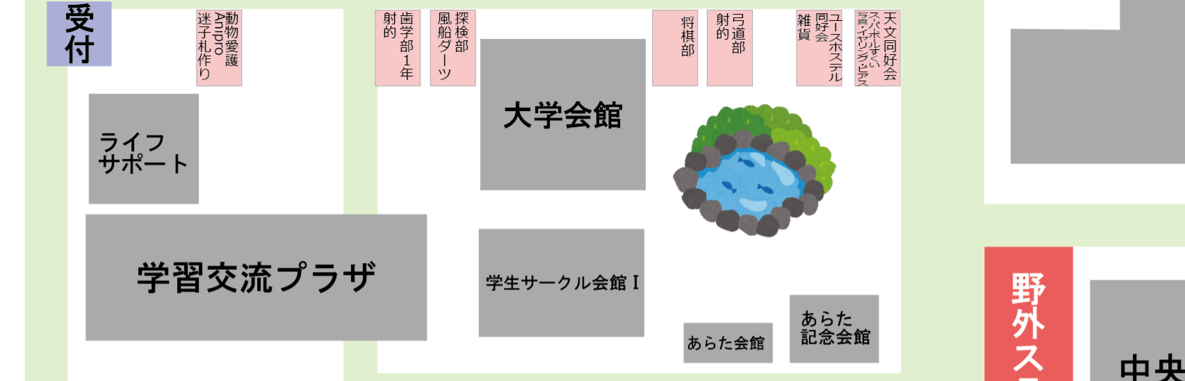 鹿児島大学の学祭で出店される模擬店の位置と売っているもの、目印になるものなどのまとめです✨